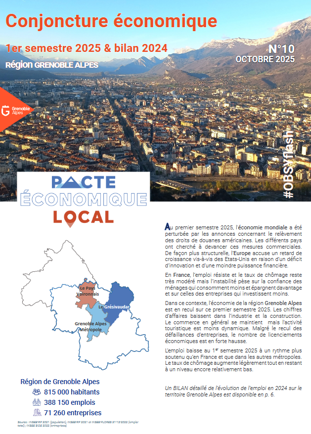 L’Observatoire économique Grenoble Alpes mis en place dans le cadre du Pacte Économique Local a publié fin octobre sa dixième note de conjoncture sur le bilan de l'année 2024 et le 1er semestre 2025 pour le territoire du Grand Grenoble.